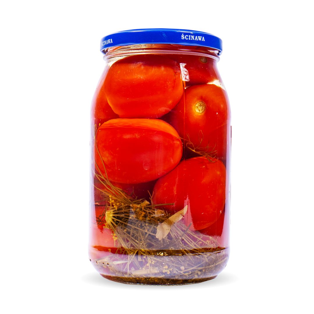Pomidory marynowane ŚCINAWA to smak słonecznego lata zamknięty w słoiku, całe pomidory w delikatnej marynacie z dodatkiem octu, kopru i przypraw aromatycznych. Wyrazisty smak pomidorów nawiązujący do wschodnich, kresowych receptur.